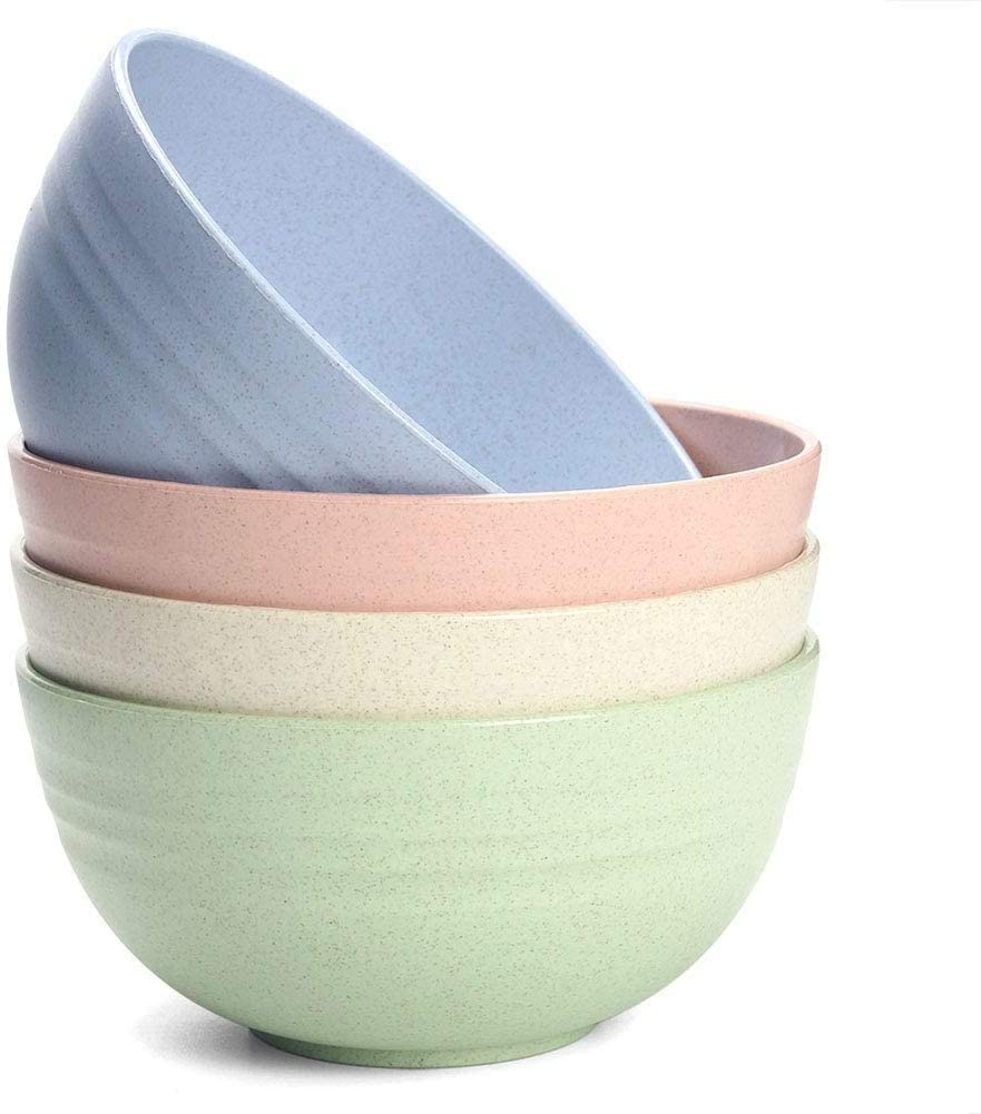 Llevábamos tiempo buscando unos recipientes irrompibles donde mis hijas pudieran comer la merienda o ciertos platos y que no pasará nada si se caían al suelo. Hace unos meses encontramos estos Tazones de Fibra de Paja de Trigo que además de ser irrompibles, no contienen Bisfenol A (BPA) y se pueden meter en el Lavavajillas y Microondas.